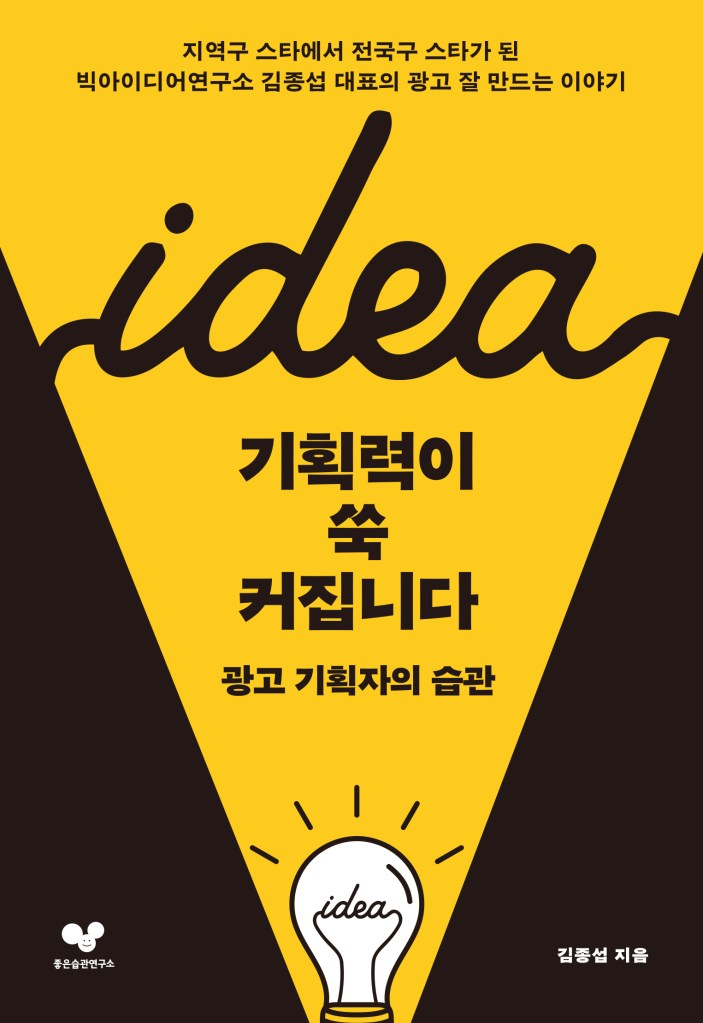 창업 첫해 120만 원을 벌며 고향인 대구에서 광고 일을 시작했다. 새로 오픈하는 가게나 병원 등을 찾아다니며 무료로 광고를 만들어주겠고 묻지마 영업을 했다. 이후 조금씩 입소문이 났다. 그의 광고가 기발하고 이색적이라 주목도가 높으며 바이럴 요소를 광고에 잘 집어넣는다는 평이었다. 그래서 개업하는 곳이나 리브랜딩을 하는 곳에서 많이 찾았다. 지금은 전국을 대상으로 지자체, 중소기업, 병원, 전문직 사무실 등을 대상으로 광고를 만들고 있다. 김종섭 대표는 번뜩이는 아이디어나 창의력(씽크 디퍼런트) 보다 실행력(저스트 두 잇)이 더 중요하다고 말한다. 이 책에서도 크리에이티브 기술만 소개하지 않고, 광고주를 설득하는 방법, 아이디어가 상시 나오는 시스템(습관) 등을 같이 소개한다. 기획력이 쑥 커지는 그의 이야기를 들어보자. (2024년 7월 22일 출간)