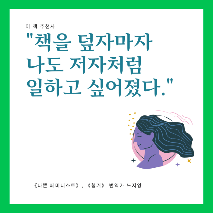 익히 아는 내용일 거라 생각했다가 즐거운 놀라움에 빠졌고 책을 덮자마자 나도 저자처럼 일하고 싶어졌다. 겸양과 성실, 인내와 애정, 긍정과 신뢰 등 한 분야의 전문가가 갖춰야 할 바람직한 태도와 창의적이고 효율적인 작업 방식을 쉽고 단정하고 유쾌한 문장으로 기록했다. 번역가뿐만 아니라 모든 프리랜서에게 공감과 용기를 주고 실질적인 도움까지 제공하는 새롭고 반가운 책이다.