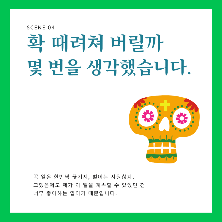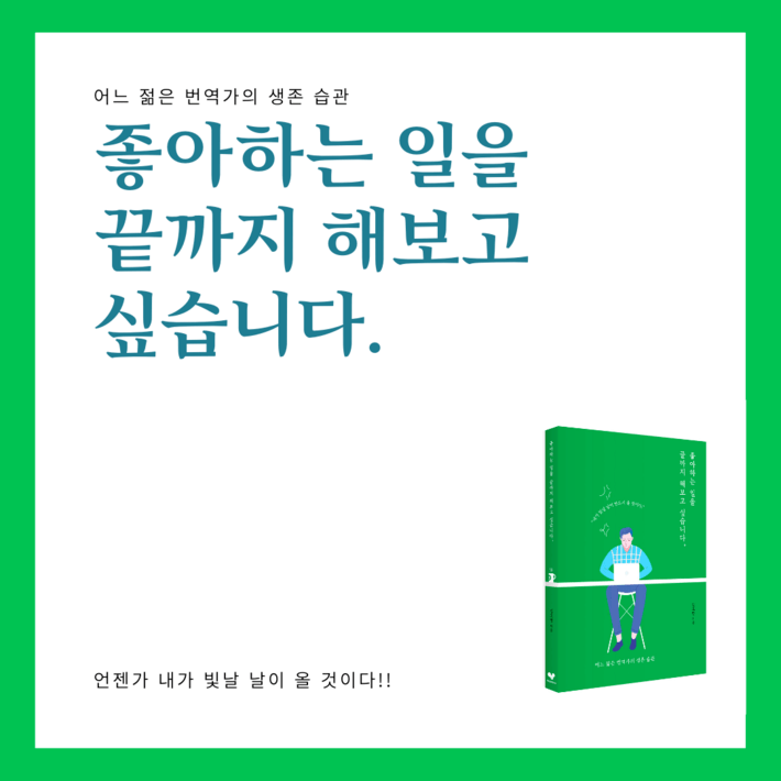 그랬음에도 제가 이 일을 계속할 수 있게 버틸 수 있었던 건, 이거 아니면 뭐 하나 싶기도 하고, 무엇보다 힘들어도 재미가 있었기 때문이에요. 번역은 제가 실력이 닿는 한 끝까지 해보고 싶은 일이거든요. 그렇게 10여 년을 질기게 버텼습니다. 중간중간 유혹은 많았어요. 일거리는 꼭 한 번씩 끊기지, 돈벌이는 시원찮지. 확 때려쳐버릴까. 몇 번을 생각했어요. 하지만 포기 안 했습니다. 힘들어도 너무 좋아하는 일이었으니까요. 아마 여러분들에게도 그런 인생잡(?) 같은게 있을 거예요.