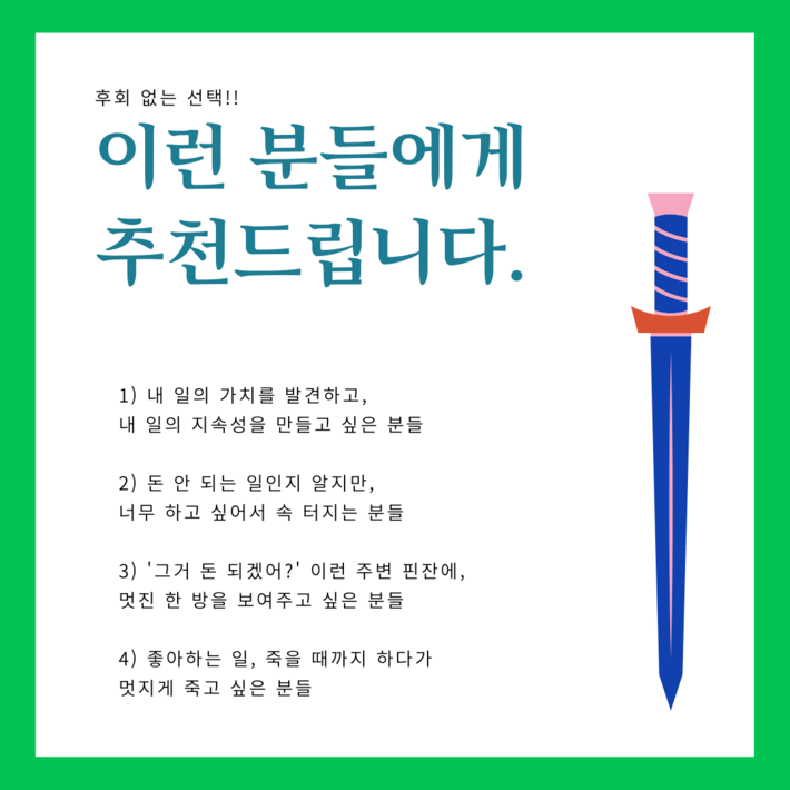 1) 내 일의 가치를 발견하고, 내 일의 지속성을 만들고 싶은 분들