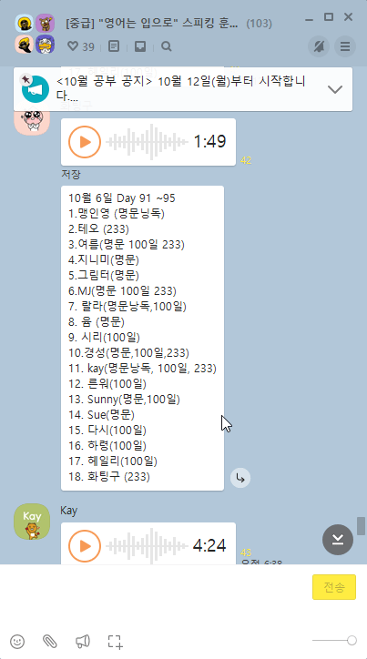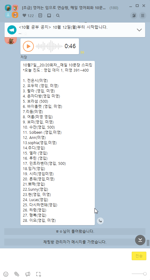 [중급] “영어는 입으로” 스피킹 훈련방 open.kakao.com
