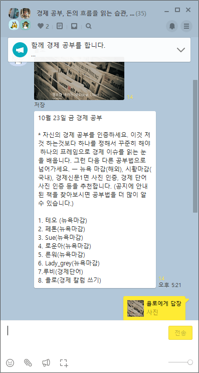 경제 공부 습관 만들기 – 매일 사진 한장 인증으로 경제 공부를 하고 있습니다. 경제 기사 읽기부터 경제 지표 체크하기 긜고 경제단어 공부 등등. 자신에게 맞는 공부법을 선택해서 매일 경제 공부를 실천하고 있습니다. (참여 코드 moon)
