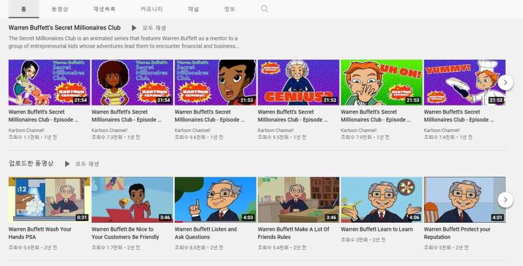 투자 고수 워렌 버핏이 어린이들의 경제 공부를 위해 만화 시리즈를 만든 사실 아시나요? 바로 ‘비밀 백만장자 클럽(Secret Millionaires Club)’입니다(아래 사진). 유튜브에서 검색해보면 무료로 볼수 있습니다. 단, 영어라는 것.