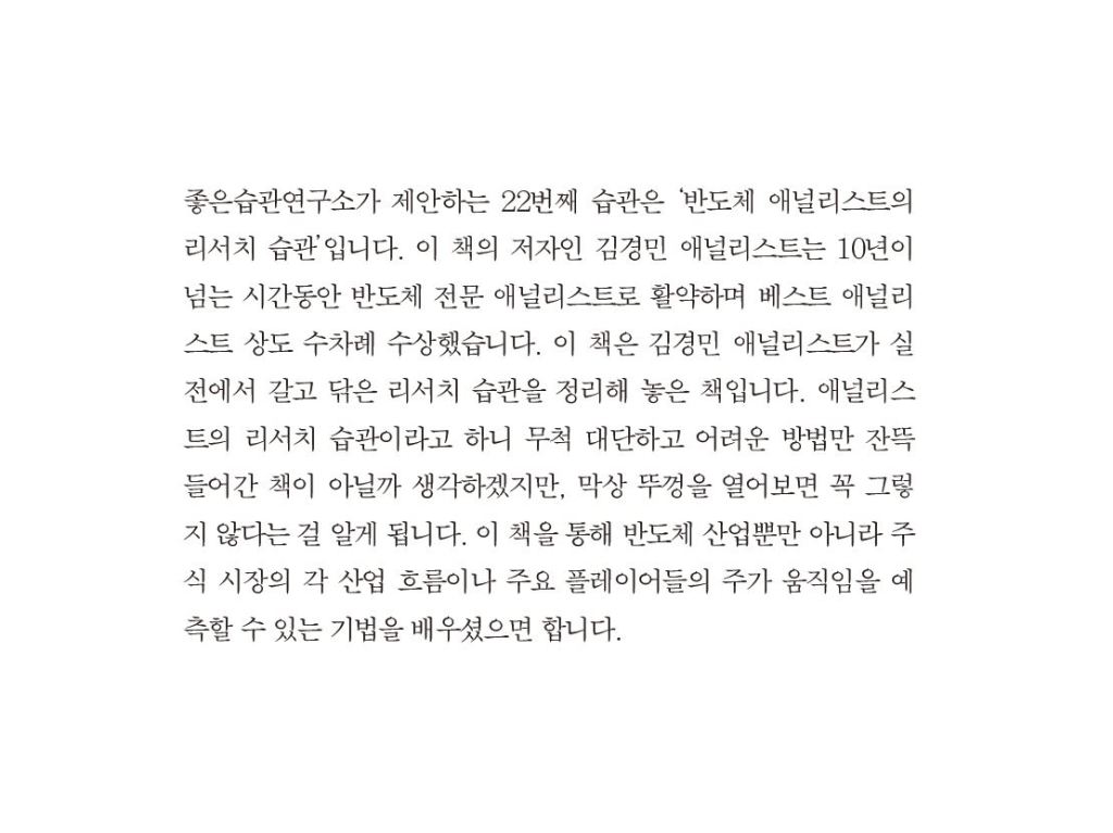 편집인의 말, 기획자의 말 좋은습관연구소2022년 8월 4일2022년 8월 19일미분류 글 네비게이션 이전다음 반도체 애널리스의 리서치 습관기술창업 36계변호사의 글쓰기 습관우리 아이 평생 경제력 이렇게 가르칩니다연금 부자 습관 매번 책을 낼 때마다 책의 맨 첫 페이지에 독자에게 전달하는 습관이 무엇이며, 왜 이 습관을 제안하는지 짧은 글을 통해 밝히고 있습니다. 한 권 한 권 모두 의미있게 정성을 담아 최선을 다해 만들고 있습니다. 다른 건 잘 할 줄 몰라, 책 한 권에 담는 내용과 메시지 만큼은 독자들에게 인정받을 수 있도록 최선을 다하고 있습니다. 이 글 공유하기:Tweet 관련