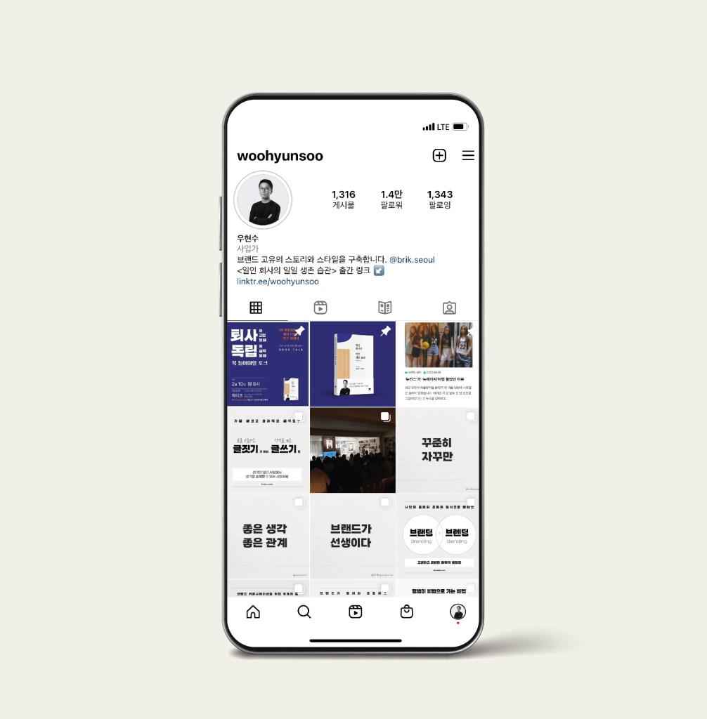 대학에서 시각디자인을 전공했습니다. 시각 디자인 분야는 광고, 편집, 영상, 웹, 서체 등 굉장히 많은 분야가 있습니다. 그중에서도 저는 ‘브랜드’ 디자인과 관련된 경력을 많이 쌓았습니다. BI나 CI를 개발하고 이와 관련해서 브랜드 스토리를 만드는 작업을 하고 있습니다. 현재까지 이 일만 20년 가까이 해왔습니다. 그리고 최근에 <일인 회사의 일일 생존 습관>이라는 책을 냈습니다.
