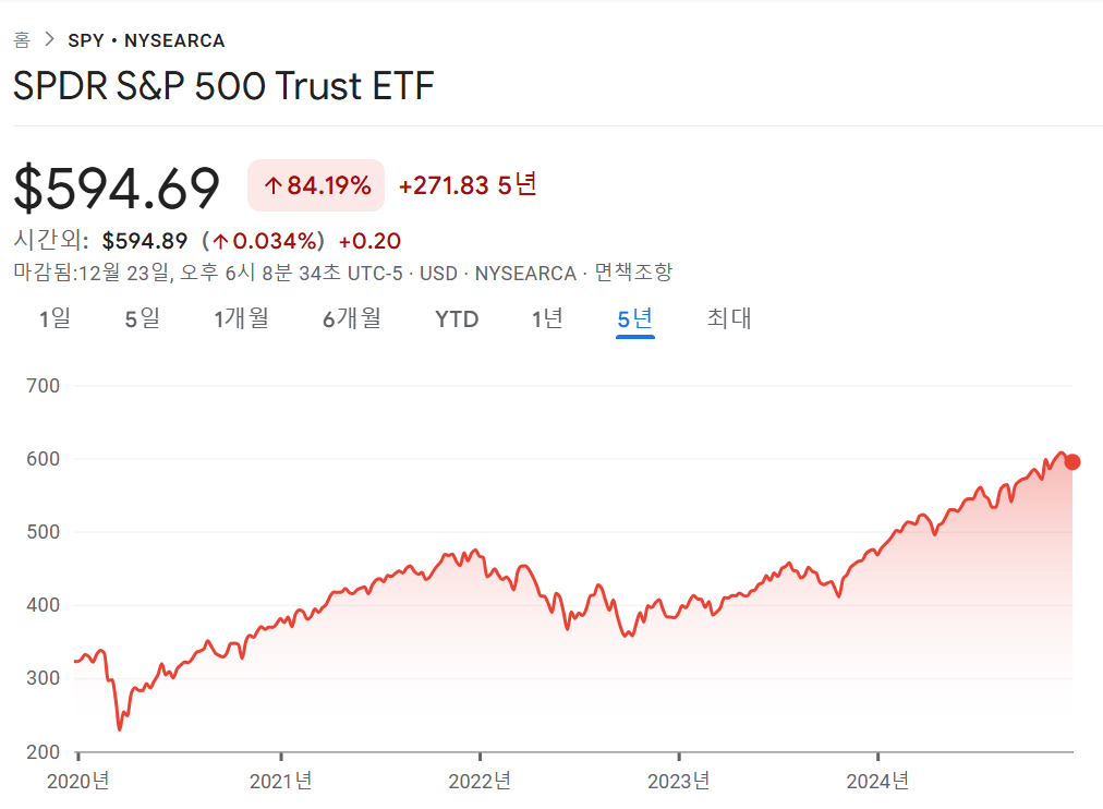 1위, 2위, 3위 3개 ETF 모두 S&P 500 지수를 추종이기 때문에 수익률이나 배당률에서는 큰 차이가 없습니다. 운용 보수 역시 3개 모두 매우 저렴한 수준이기 때문에 마음에 가는 ETF를 선택하면 됩니다.