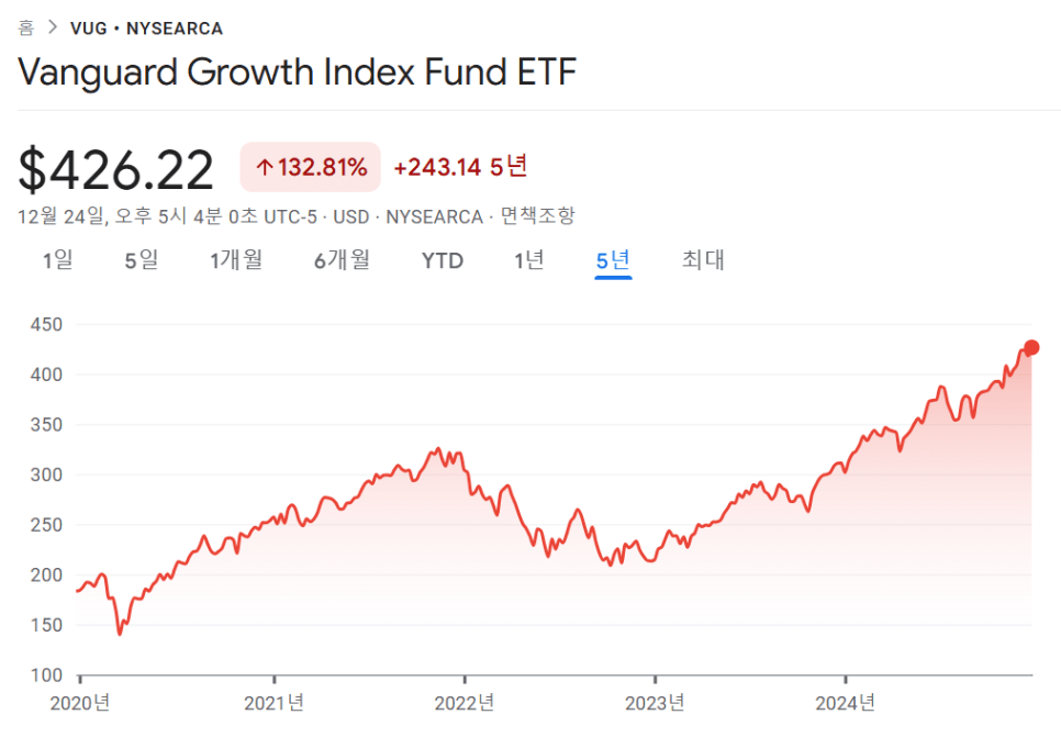9위는 미국 대형 성장주에 투자하는 뱅가드그룹의 VUG이고,